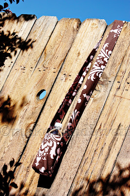 Then fold your long strap piece in half length-wise. Sew with a 1/2 inch seam allowance. Turn right side out and press with the seam along the back of the strap.