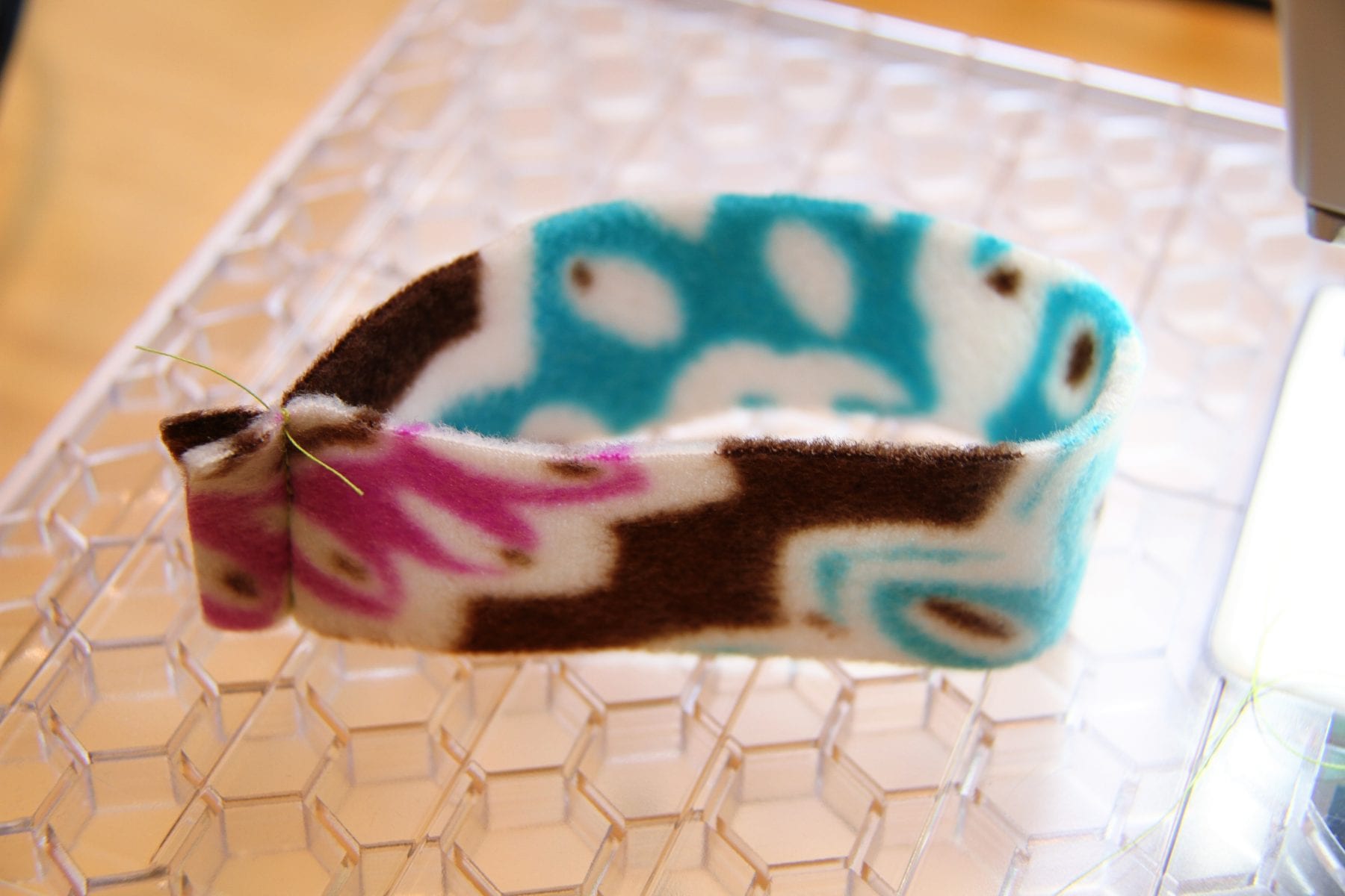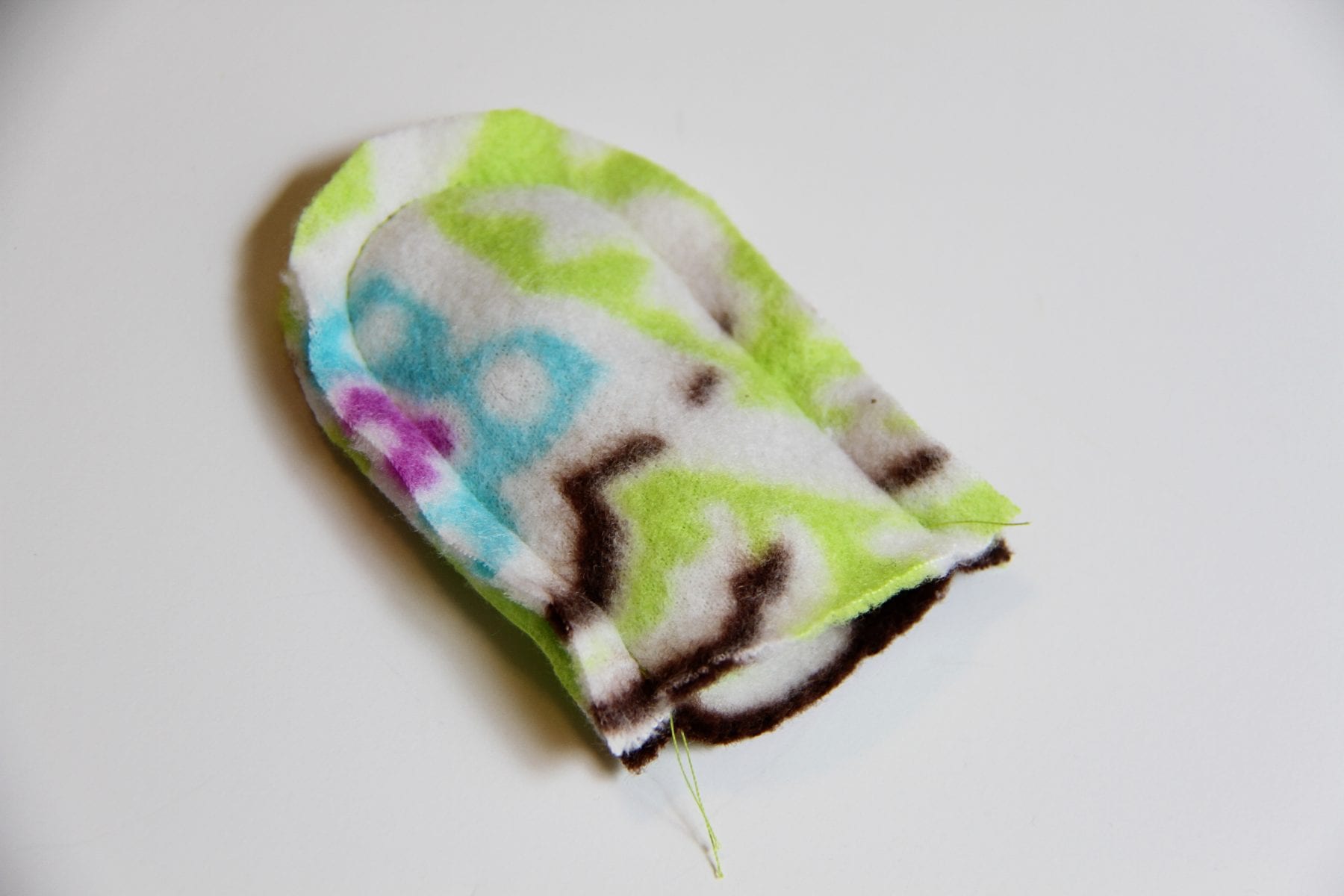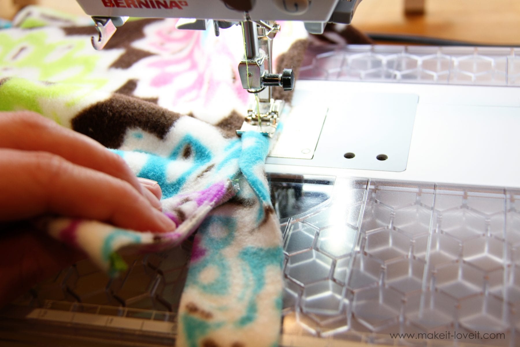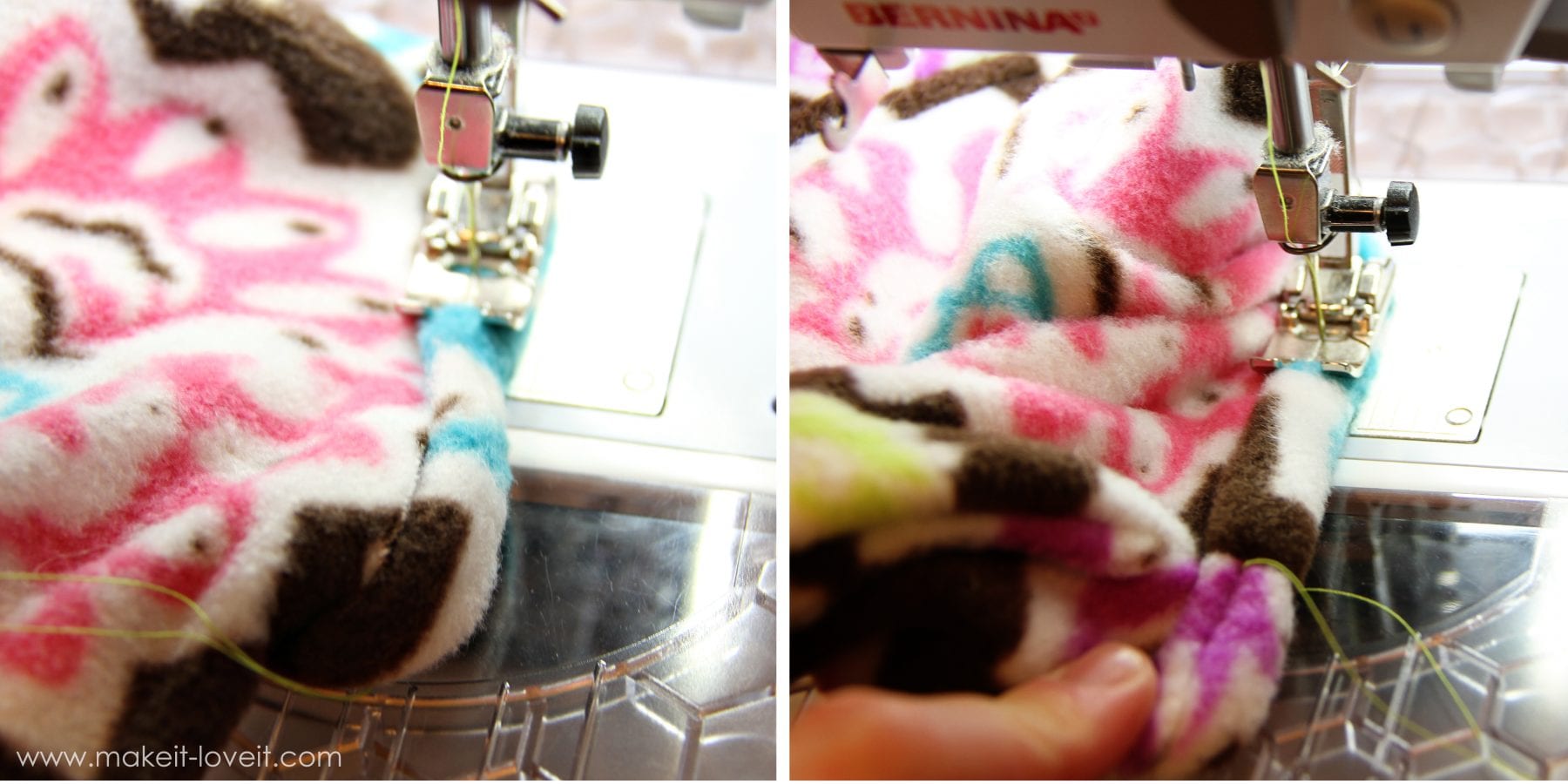 (Make sure and cut them with the stretch of the fleece going left to right, not up and down. You want the blanket to stretch across the belly, not from head to toe.) Â