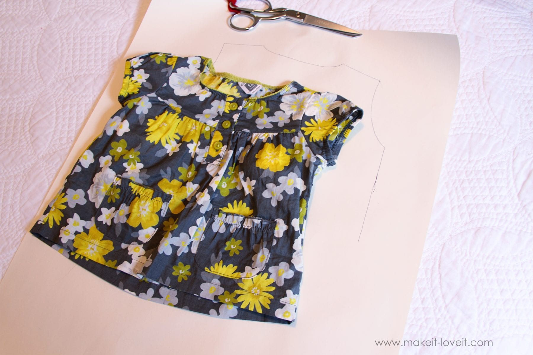 I grabbed a little shirt that was a little wide on my little girl (to give plenty of room for the blanket) to use as a pattern. You just need the top of the shirt to use for the shape of the blanket. Make sure that the shirt you pick is a high neck (adjust it if necessary). Draw the shape of the back of the shirt first…….which will be used for the back of the sleeper. **Make sure to add on some extra for the seam allowance.