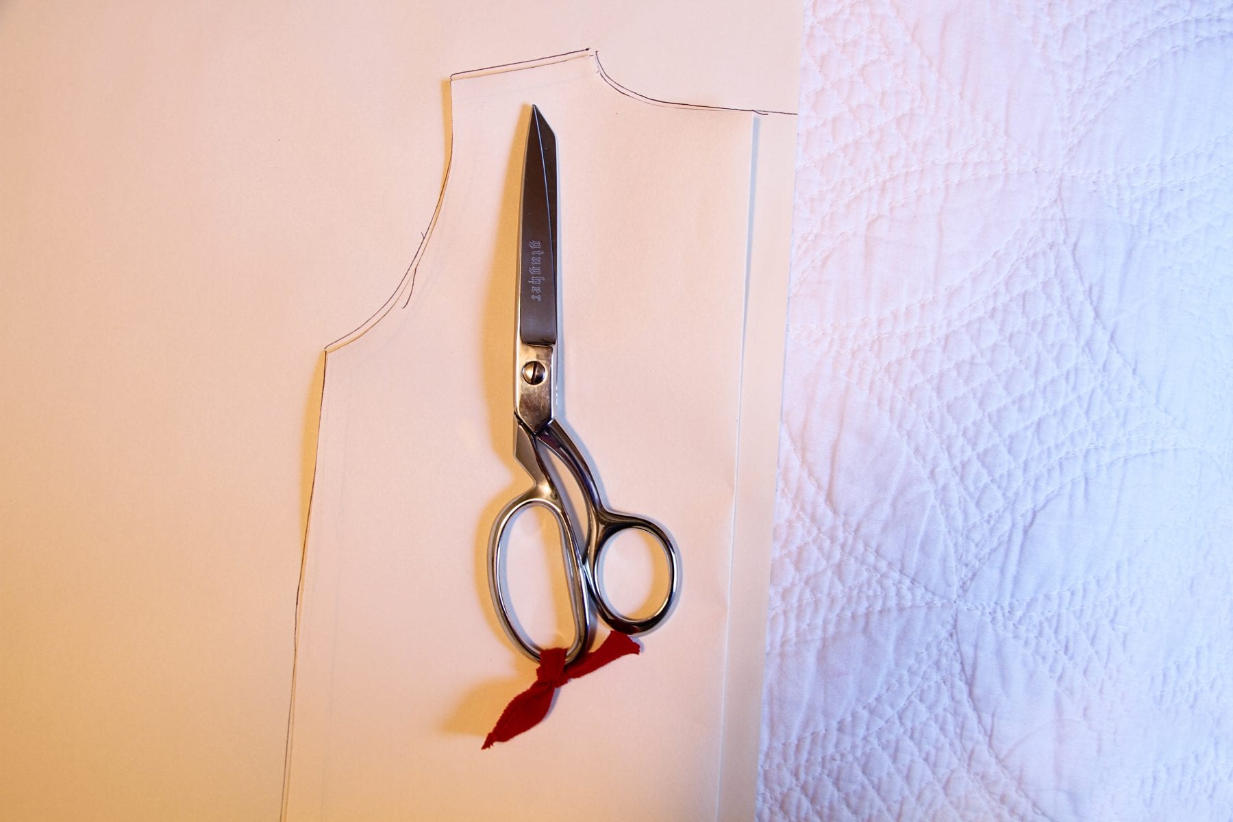 Now, the best way to be sure that your pattern is symmetrical is to fold the pattern in half lengthwise and make sure both sides match up. If you need to re-cut a new piece to accomodate, that’s just fine. Or if you want to only cut half the pattern (lengthwise) and then place it on the fold to cut the whole piece of fabric, that’s just fine too.
