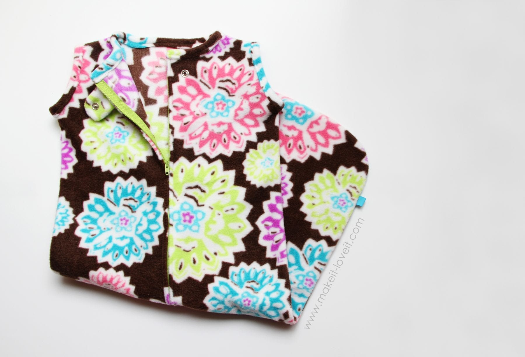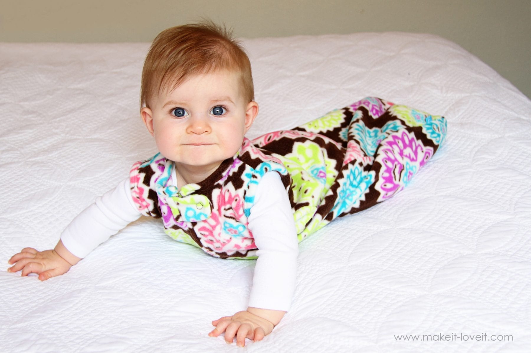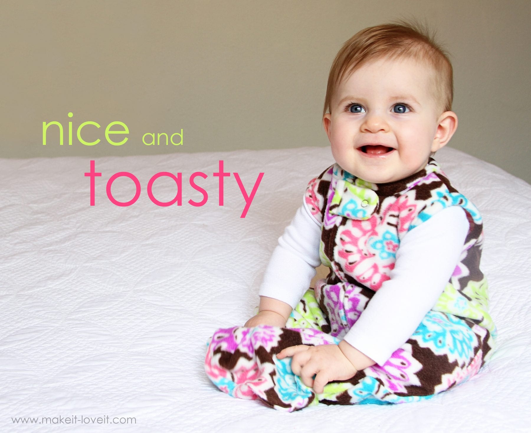 I’m sure you have seen those little zippered blankets in the stores. You know, the ones that the baby can sort of slip into, like a sleeping bag……….but with arm holes.Â