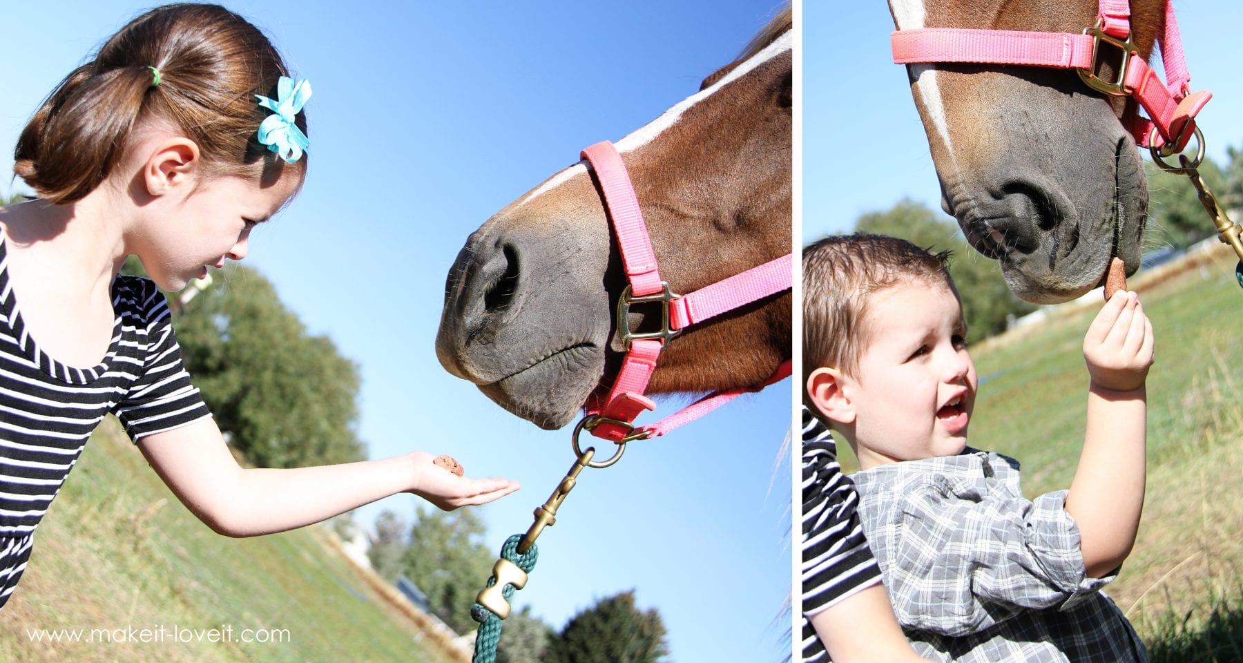 Steve’s grandpa has horses.…..so they were so excited to feed them the next day.