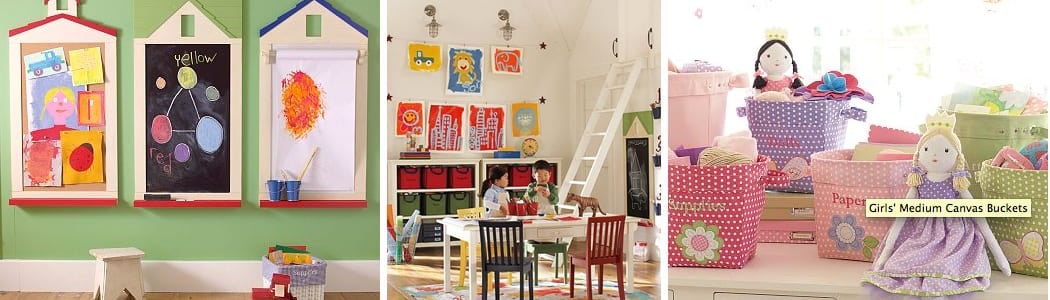 memo board source, playroom source, buckets/dolls source