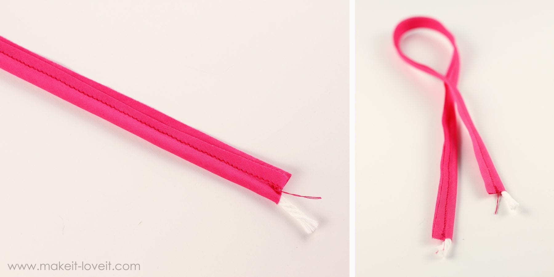 Sew all the way to the end, making sure to backstitch at both ends. And there you have your long piece of cording.