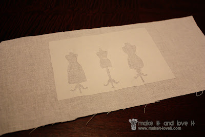 And then, remember how I used freezer paper and fabric paint to make my Halloween costumes (here)?  Well, instead of cutting out my design with a razor blade, I used the Silhouette cutter to cut my freezer paper for the stencil………….and then used fabric paint to create the dress form shapes on the green pouch.