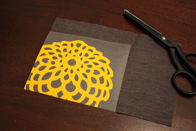 For the first one, I purchased this dahlia shape from the Silhouette store, printed it out on heat-transfer vinyl (found here) and then removed all of the negative space from the backing.